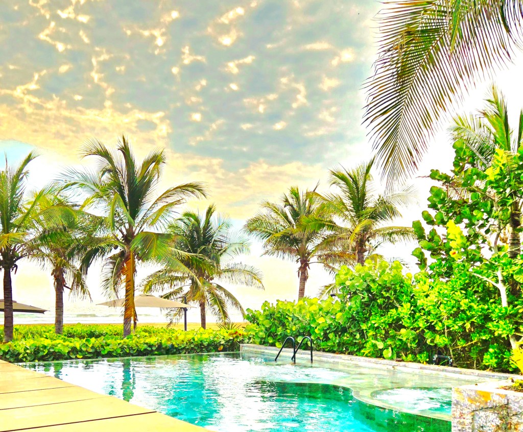 As the sun would creep below the horizon fantastical displays of color would explode in the sky. The silhouettes of palms danced to the melody of ocean waves, peacock howls and whispering winds.